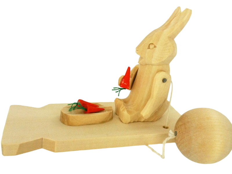 Деревянная композиция «Заяц с морковкой» станет замечательным образцом сюжетной богородской игрушки.