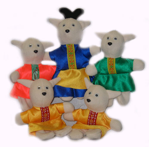 Перчаточным куклам в виде Козочки и трех маленьких Козлят найдется место во многих театральных постановках, а также на тематических занятиях, в кабинете психолога и в игровой.