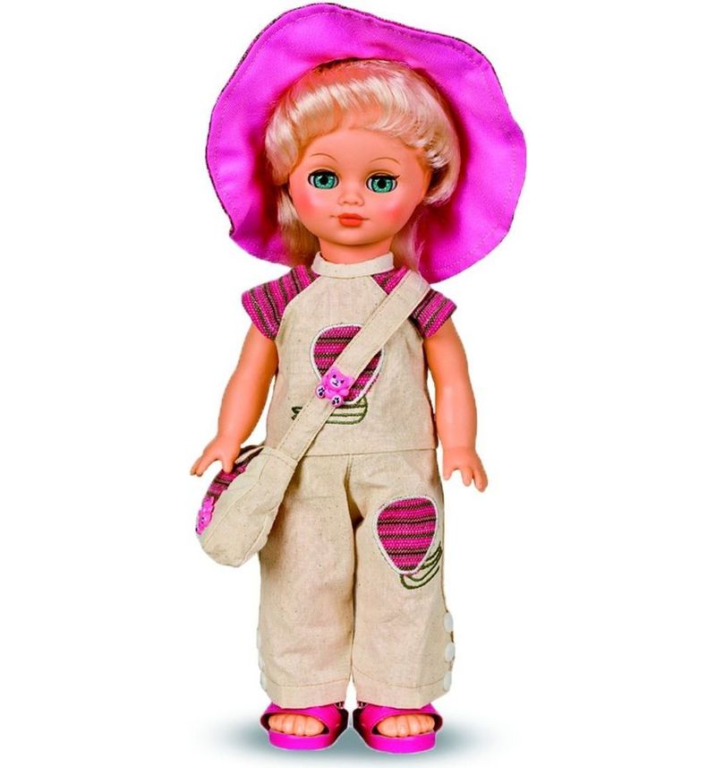 Комплект дополняют сумочка и туфли. Прекрасные прошитые волосы из качественного нейлона, похожие на натуральные, можно завивать, расчёсывать, укладывать в разные причёски. Кукла озвучена.