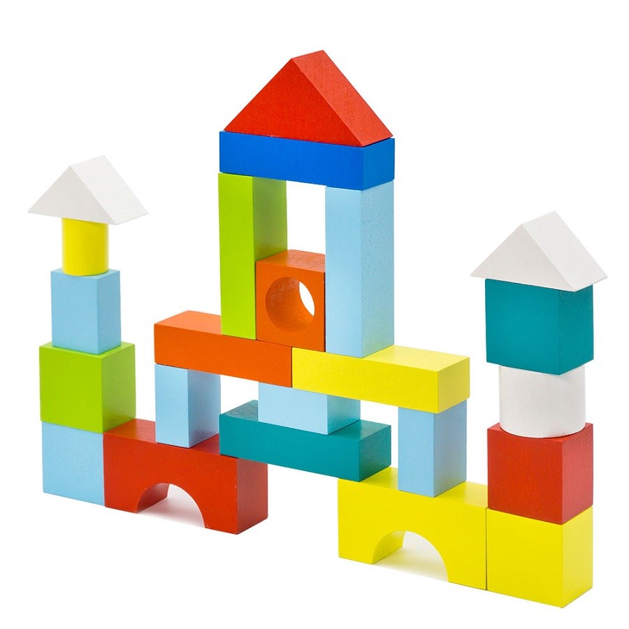 Количество деталей позволяет построить интересные конструкции: замки, дома, арки. А природный материал берёза - тёплый и приятный на ощупь.