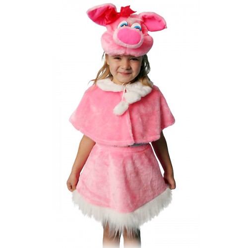 Карнавальный костюм Поросюшка - это ярко-розовый сарафанчик из искусственного меха с отделкой и красивым воротничком, который смотрится женственно и мило.