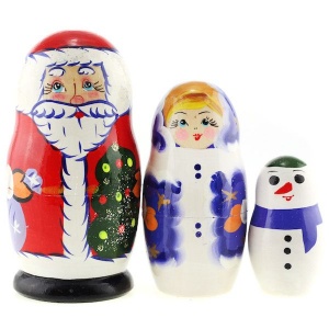 Небольшая матрешка 3в1 прекрасно подойдет для знакомства детей с новогодними персонажами – Дедом Морозом, Снегурочкой, Снеговиком.
