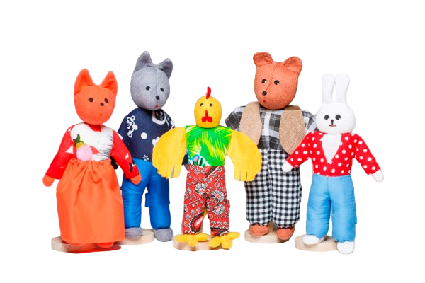 В комплекте: заяц, медведь, петух, волк, лиса.