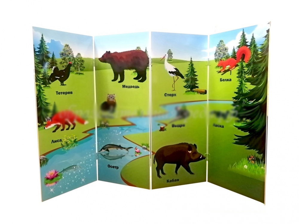 Напольная ширма "Животные" поможет познакомить воспитанников с разнообразием животного мира России.