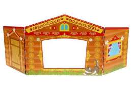 Настольная ширма для театральных представлений выполнена из ПВХ 3 мм, состоит из трех частей и собирается на шнурках.
